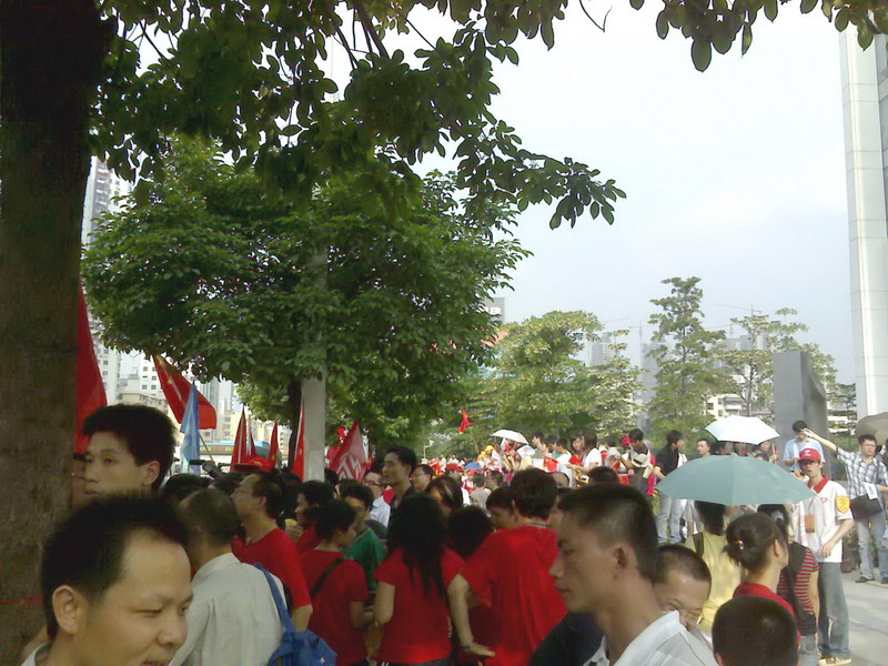 好多好多的人,白的红的,一浪一浪.小旗大旗, 不停的甩.气氛真是好~~!!